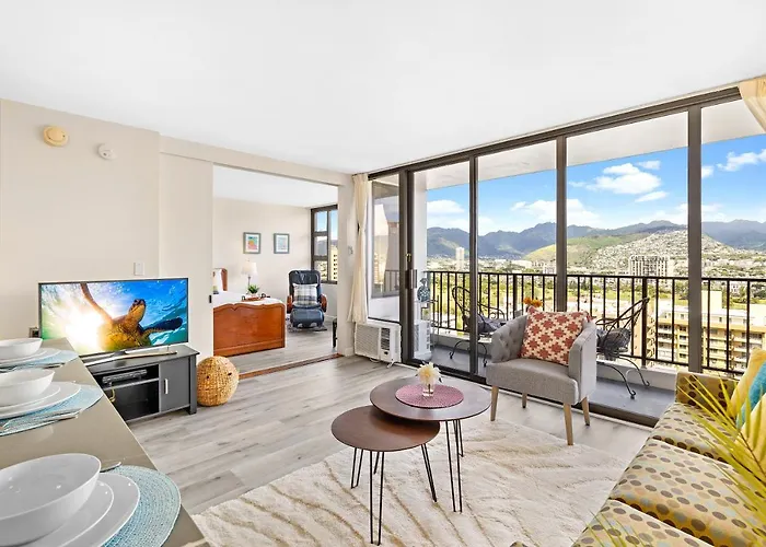 L'appartamento Mountain View, Close To Waikiki Beach With Parking offre agli ospiti un balcone e un salottino, oltre a comfort moderni come un impianto di climatizzazione. Un vantaggio per gli ospiti dell'appartamento è la presenza di asciugacapelli e teli da bagno nel bagno. Troverai anche un bagno con WC separato.